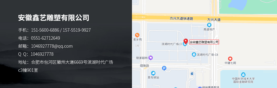 安徽鑫藝雕塑有限公司 是一家集研發(fā)設(shè)計(jì)、制作、安裝一體化的實(shí)力型現(xiàn)代雕塑公司。公司重視城市發(fā)展環(huán)境,追求空間與創(chuàng)意性建筑的結(jié)合,團(tuán)隊(duì)擁有眾多雕塑設(shè)計(jì)師。創(chuàng)作設(shè)計(jì)、模型制作、產(chǎn)品成型一條龍制作工藝,可制作中式、歐式各種材質(zhì)的雕塑和工藝品系列(砂巖、漢白玉、琉璃造型、樹脂透花等),以及各種高消費(fèi)場所貼金工程。業(yè)務(wù)區(qū)域:合肥雕塑公司、安徽浮雕公司、合肥浮雕制作、合肥雕塑制作、安徽雕塑制作、合肥雕塑廠、合...